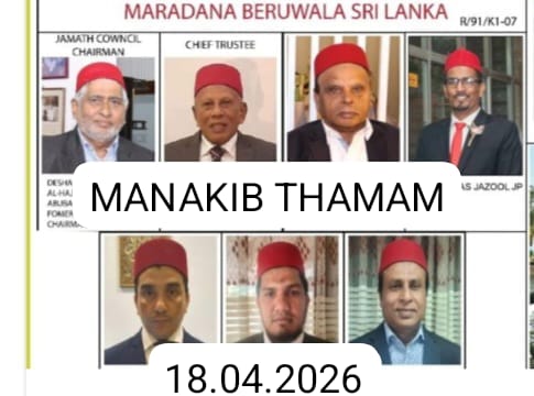 ஷாதுலிய்யா தரீக்காவின் ஸ்தாபகர் குத்புல் அக்பர் இமாம் அபுல் ஹஸன் அலியுஷ் ஷாதுலி (றழி) அவர்களின் 860ஆவது ஜனன தினத்தை முன்னிட்டு (1100 ஆண்டுகள் பழமைமிகு) இலங்கையின் முதலாவது பள்ளிவாசலான வரலாற்றுப் பிரசித்திபெற்ற பேருவளை மருதானை மஸ்ஜிதுல் அப்ரார் பள்ளிவாசலுடன் இணைந்த சாதுலியா ஸாவியாவில் 159ஆவது வருட சாதுலியா மனாகிப் மஜ்லிஸின் தமாம் வைபவம் 18.04.2026 சனிக்கிழமை மாலை ஷாதுலிய்யா தரீக்காவின் உலக ஆன்மீகத்தலைவர் சங்கைக்குரிய சேஹஸ் ஸஜ்ஜாதா அஷ்ஷெய்ஹ் மஹ்தி அப்துல்லாஹ் அல்பாஸி அல் மக்கீ அஷ்ஷாதுலி நாயகம் அவர்களின் அனுமதியின் கீழ் ஜமாஅத் சபைத் தலைவர் சிரேஷ்ட சட்டத்தரணி அல் ஹாஜ் எம்.ஏ.எம் ஹனபியின் வழிகாட்டலின் கீழ் கலீபதுஷ் ஷாதுலிகளான மௌலவி அல் ஹாஜ் எம்.ஐ.எம் ரபீக் (பஹ்ஜி), மௌலவி எம்.ஜே.எம் பஸ்லான் (அஷ்ரபி – யமனி, பீ.ஏ) ஆகியோரின் இணைத் தலைமையின் கீழ் நடைபெறுவதோடு காலி அலிய்யா அரபுக் கல்லூரி பணிப்பாளர் கலீபத்துல் குலபா மௌலவி அல் ஹாஜ் எம்.இஸட்.எம் முஹம்மத்