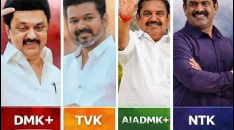 தமிழகத்தில் திமுக, அதிமுக, நாம் தமிழர், தவெக என 4 முனை போட்டி நிலவுகிறது.